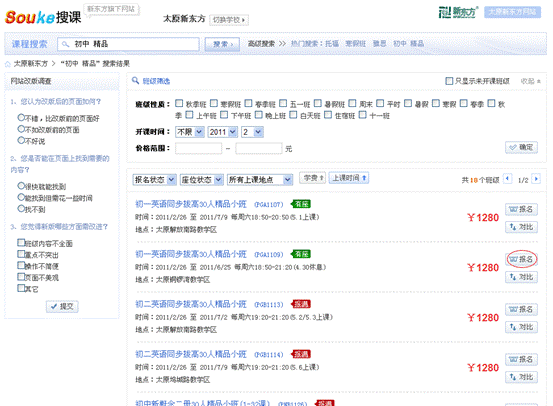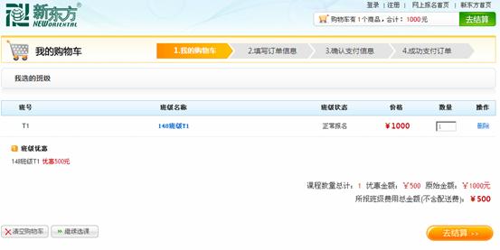 您可通过网上报名首页(http://baoming.xdf.cn/Index.aspx?sid=21)的课程搜索,找到您想要报名的班级,点击 “报名”按钮,将班级就加入购物车。