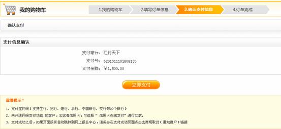 “确认支付信息页面”将显示已提交的支付信息,确认无误后,点击“立即支付”。