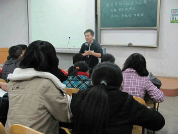 祁胜初老师一向以“博学、幽默、激情”的讲课风格而著称,此次巡讲同学们又一次充分感受到了祁胜初老师的魅力。祁老师从四六级考试阅读及写作的备考讲到了大学生英语学习及人生规划,祁老师的讲授不仅使学生懂得如何通过四六级考试,而且更加明确如何度过有意义的大学生活。