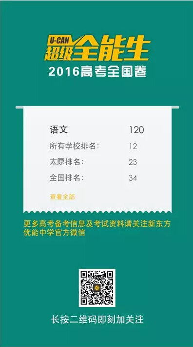 四、单科分数排名展示页面 答案与详细解析及16年高考命题趋势专家解读会陆续发布,敬请关注!