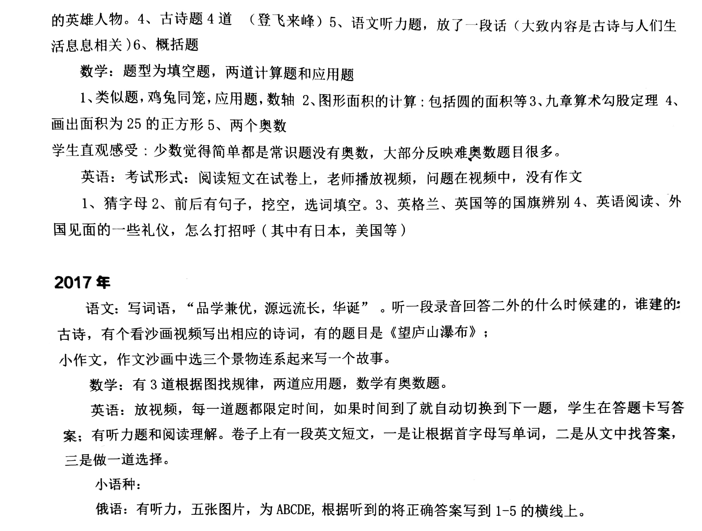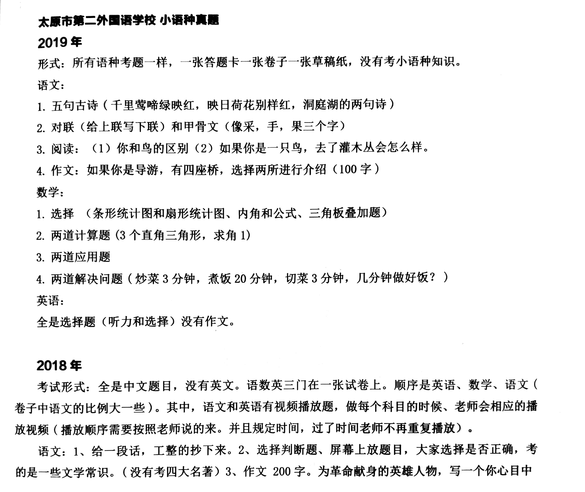 太原市第二外国语学校小语种历年真题回顾
