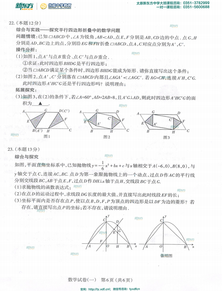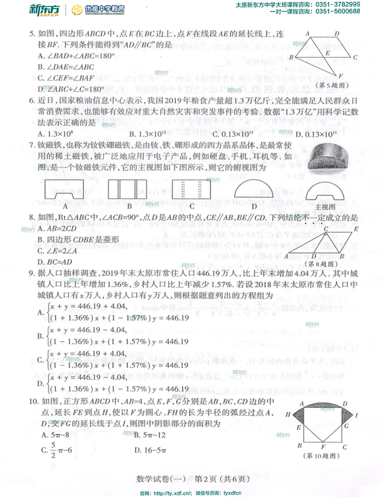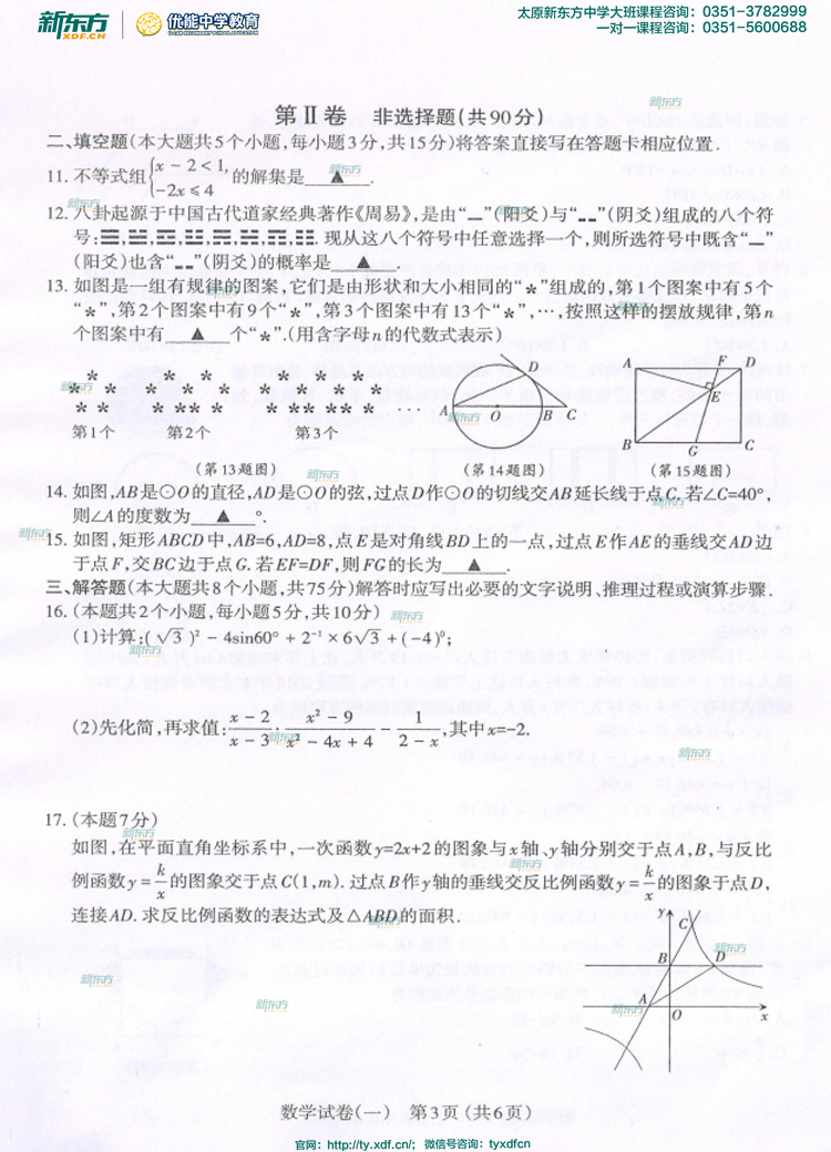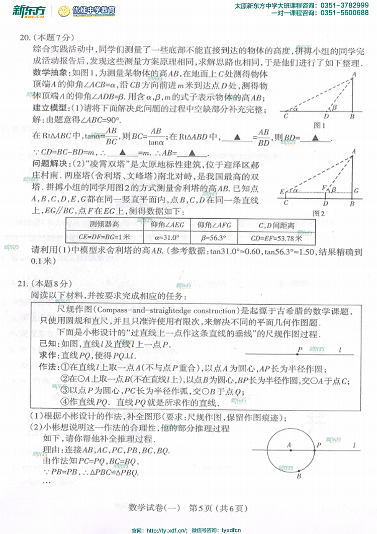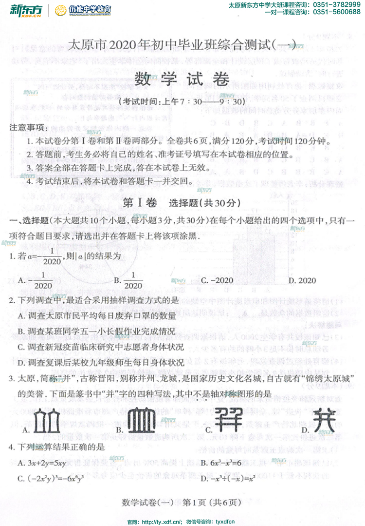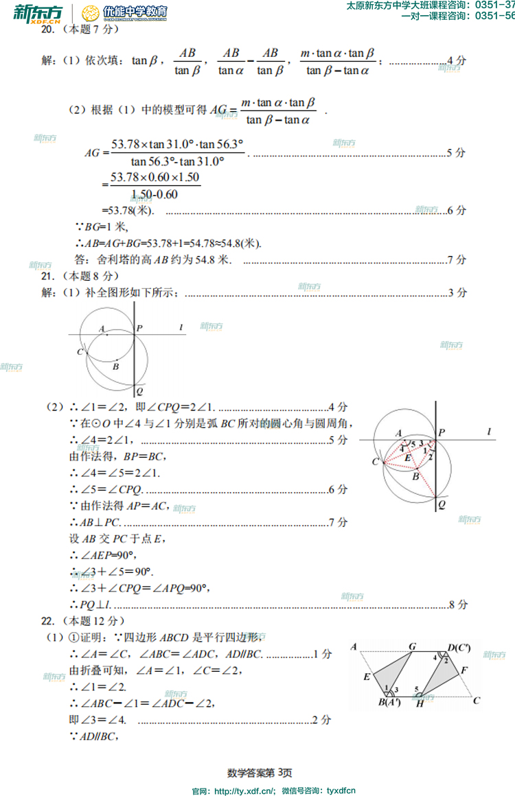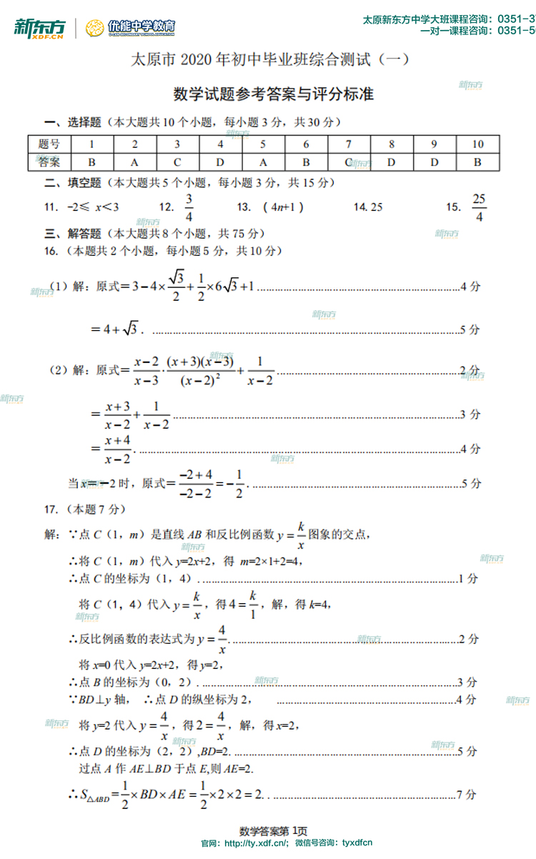 ——太原新东方优能一对一解析2020太原市中考一模数学试题